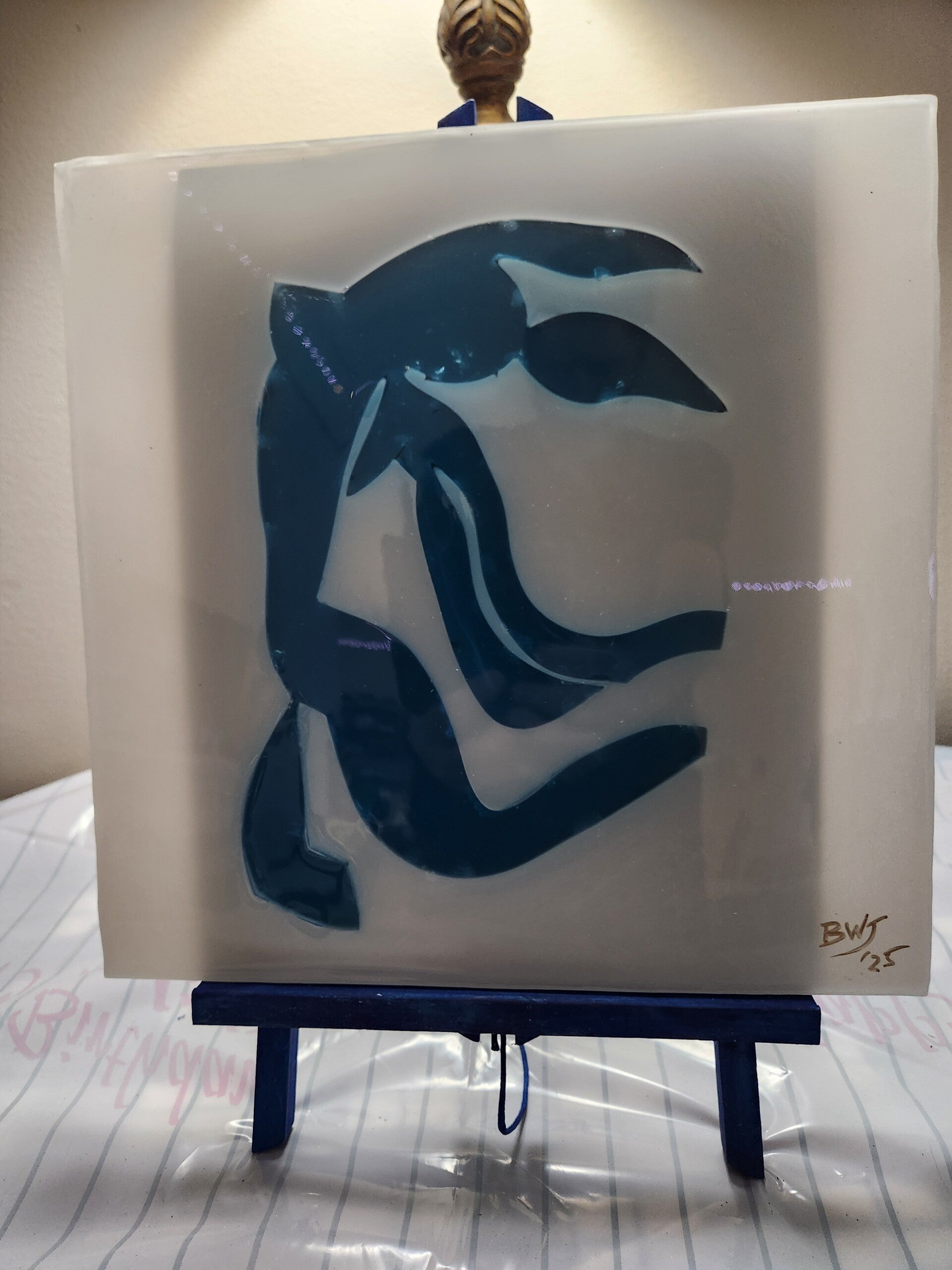 Epoxy resin. 30x30x1cm. Easel sold separately. As each piece is one-of-a-kind, work can be reproduced, although colour may vary.
